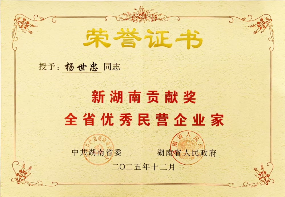 会议宣读了《中共湖南省委 湖南省人民政府关于表彰新湖南贡献奖全省优秀民营企业家的决定》,授予杨世忠等100名民营企业家“新湖南贡献奖全省优秀民营企业家”称号,以表彰其在技术创新、产业引领和社会责任等领域的突出贡献。